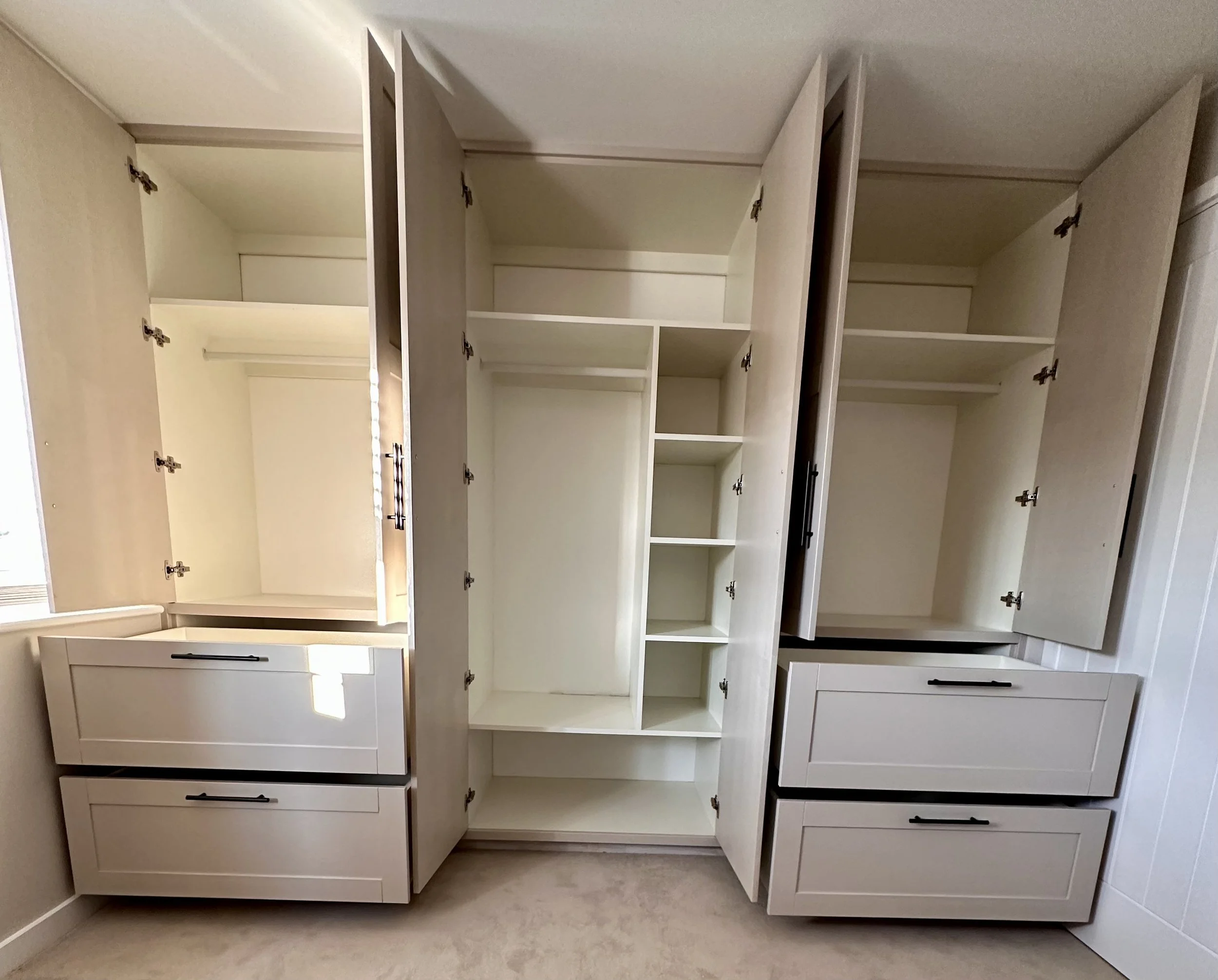 At Craftex Carpentry, we specialise in creating custom traditional kitchens and wardrobes, each crafted entirely bespoke to your specifications. Our expert craftsmanship ensures every detail is tailored to complement your home’s character and your personal style. Using premium materials and time-honoured techniques, we deliver durable, elegant solutions that combine functionality with timeless design. Whether you require intricate cabinetry, classic mouldings, or bespoke storage solutions, our team is dedicated to bringing your vision to life with precision and care.